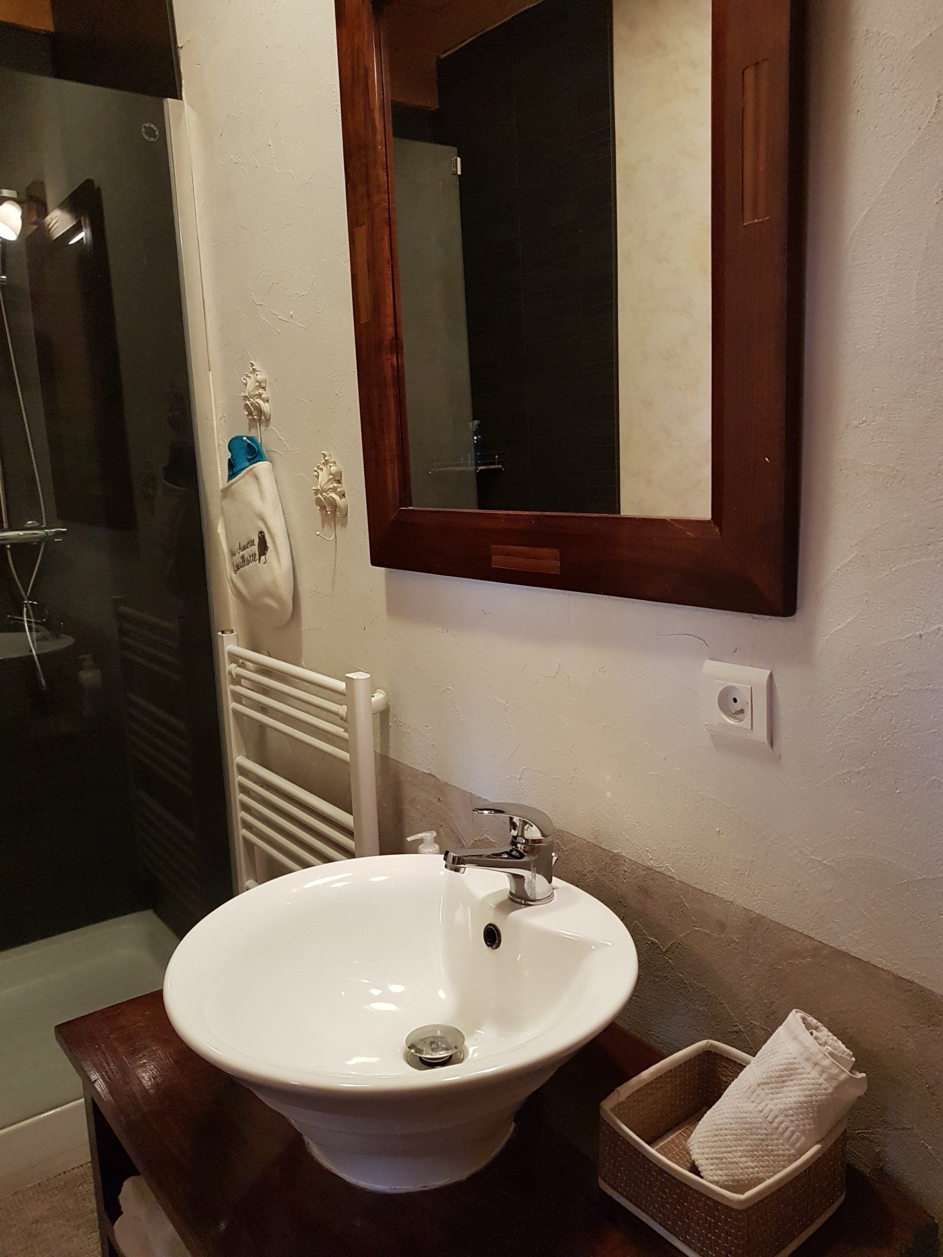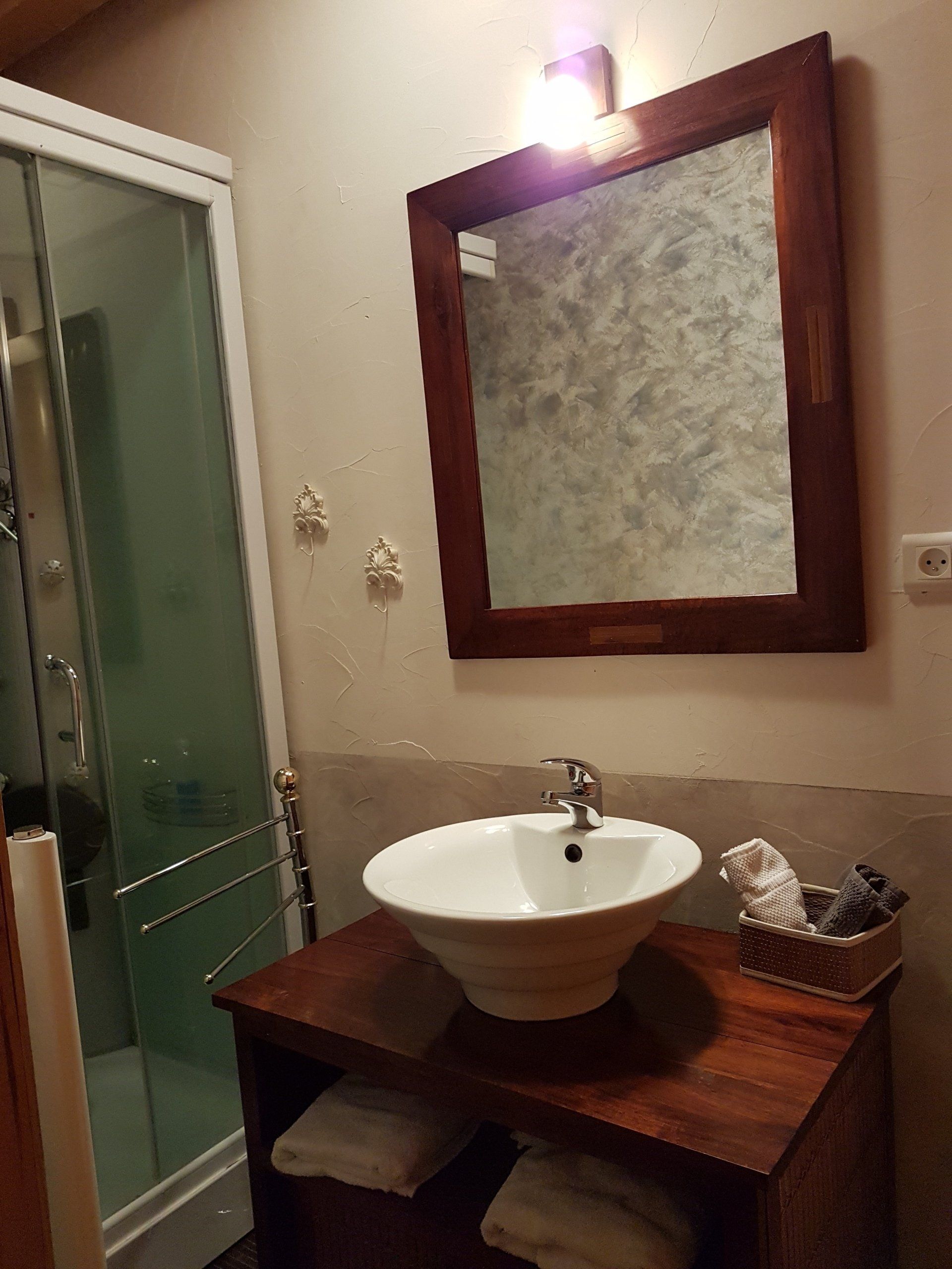Salle de bain comprenant : cabine de douche avec jets,lavabo,wc