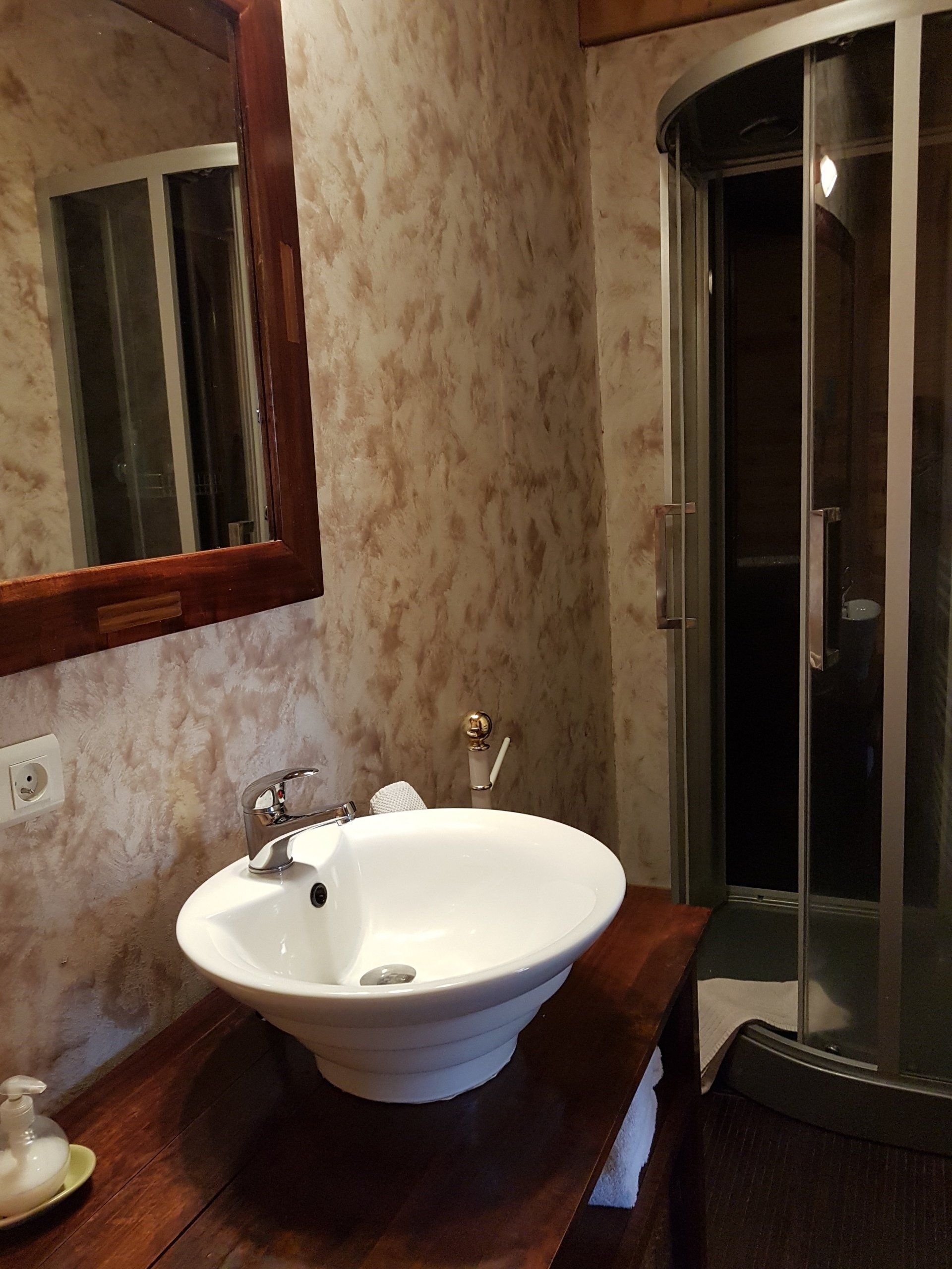 Salle de bain comprenant : cabine de douche avec jets,lavabo,wc